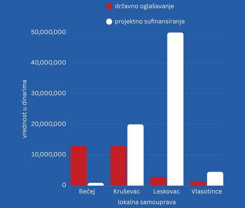 Dok je za konkursno sufinansiranje opština obezbedila svega 900.000 dinara, na državno oglašavanje potrošeno je najmanje 13 miliona dinara.
