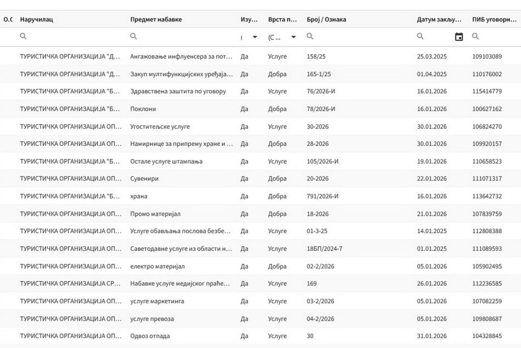 Međutim, u Registar ugovora, gde bi po propisima trebalo da budu objavljene informacije o svakom ugovoru i svakoj kupovini – od kancelarijskog materijala preko usluga, pa do reprezentacije – Turistička organizacija opštine Bečej nije unela nijedan podatak.