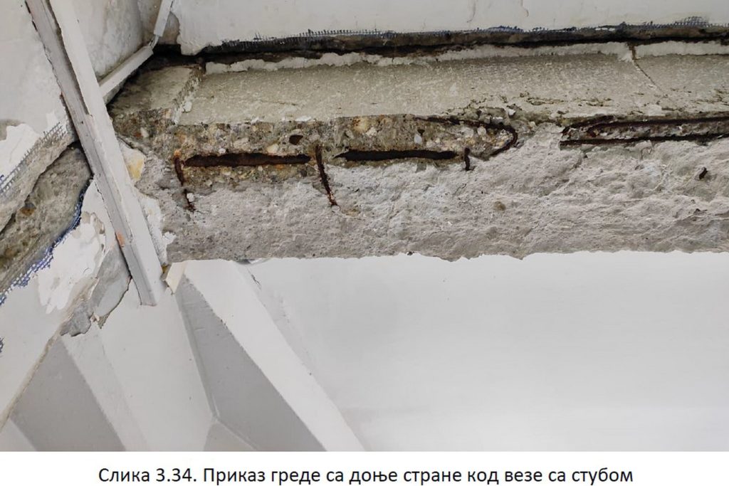 „Glavni noseći elementi – armiranobetonske grede, stubovi i ploče – ne pokazuju znake aktivnih deformacija ili prslina konstruktivnog karaktera. Uočena oštećenja su lokalnog obima i odnose se uglavnom na površinska oštećenja zaštitnog sloja betona, koroziju armature i degradaciju obloga“.