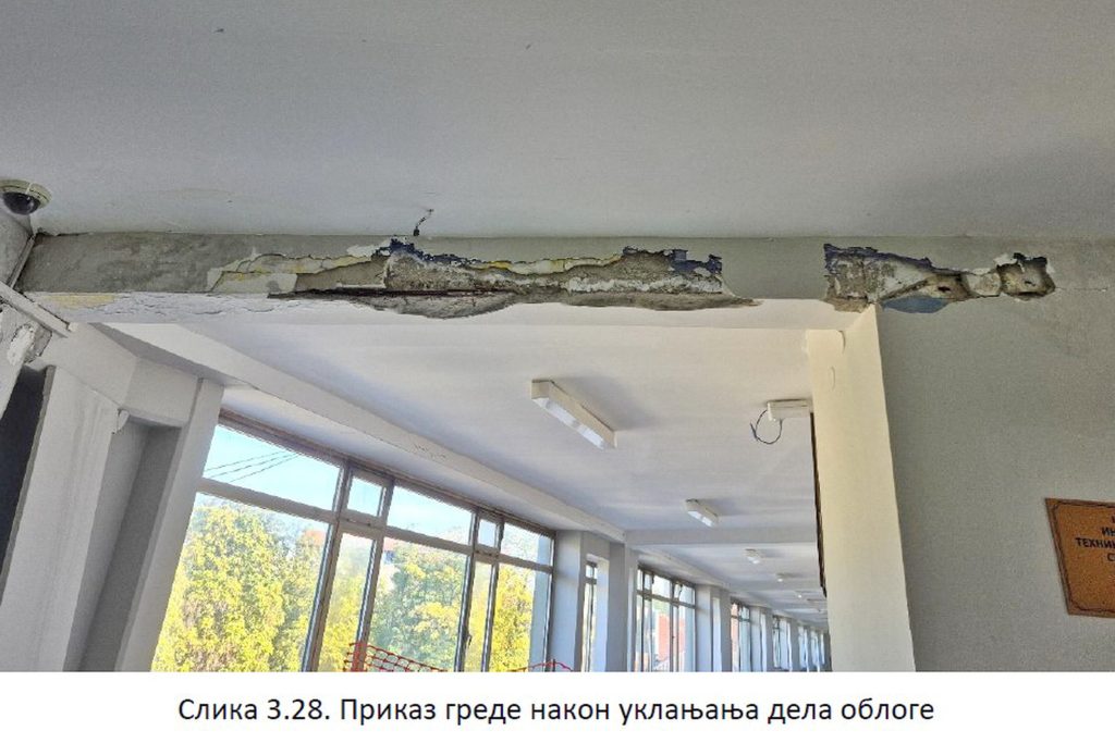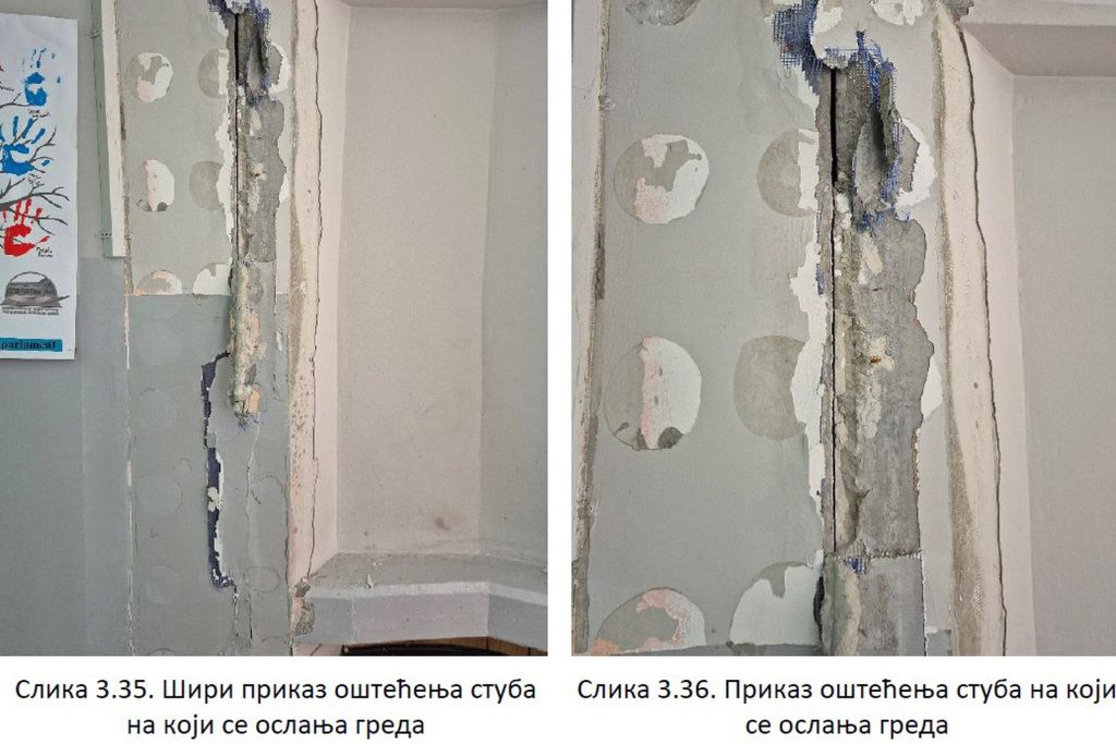 Trenutno stanje konstrukcije škole, izgrađene 70-ih godina prošlog veka, može biti dokazivo utvrđeno tek nakon što se uradi dijagnostika i kontrolni proračun u sklopu projekta sanacije.