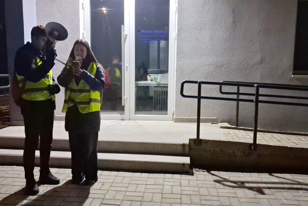 Potom se su se građani – mahom srednjoškolci – u pratnji policije uputili ka zgradi Bečejprevoza u industrijskoj zoni, gde su ih toplim čajem dočekali članovi udruženje građana „Samo lokalno“.