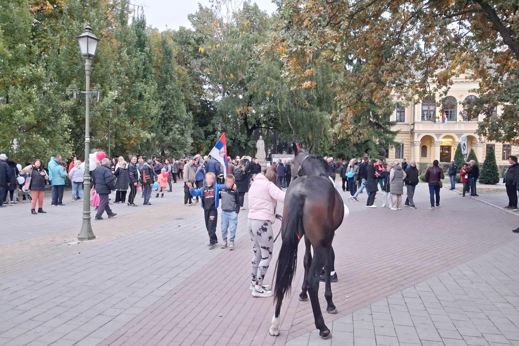 Prvi put otkad se u Bečeju organizuju okupljanja simpatizera stranke na vlasti – skupu je prisustvovao i konj.