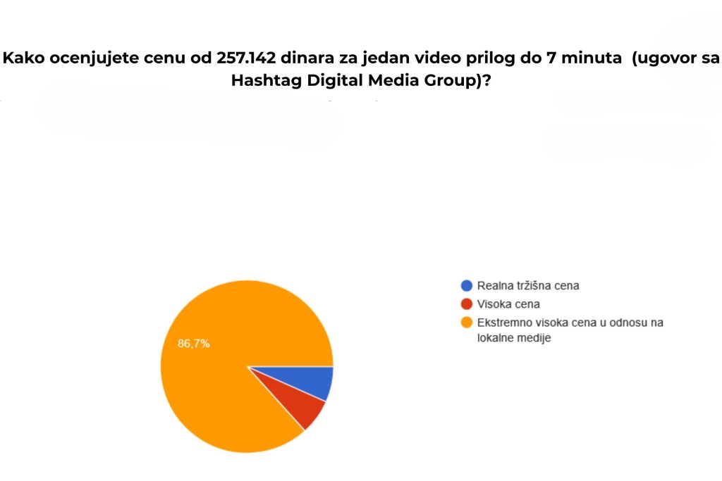 Poseban gnev učesnika ankete izazvale su cene pojedinačnih usluga koje opština plaća tim medijima. U slučaju Hashtag Digital Media Group čak 86,7% građana ocenjuje cenu od 257.142 dinara za jedan video prilog do 7 minuta kao „ekstremno visoku“.