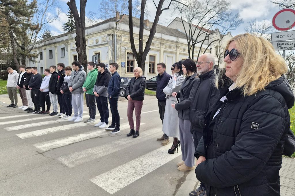 Gimnazijalci, neki od nastavnika iz srednjih i osnovnih škola i građani Bečeja danas su na raskrsnici kod Gimnazije Bečej odali poštu poginulima u padu nadstrešnice železničke stanice u Novom Sadu 1. novembra 2024. godine.